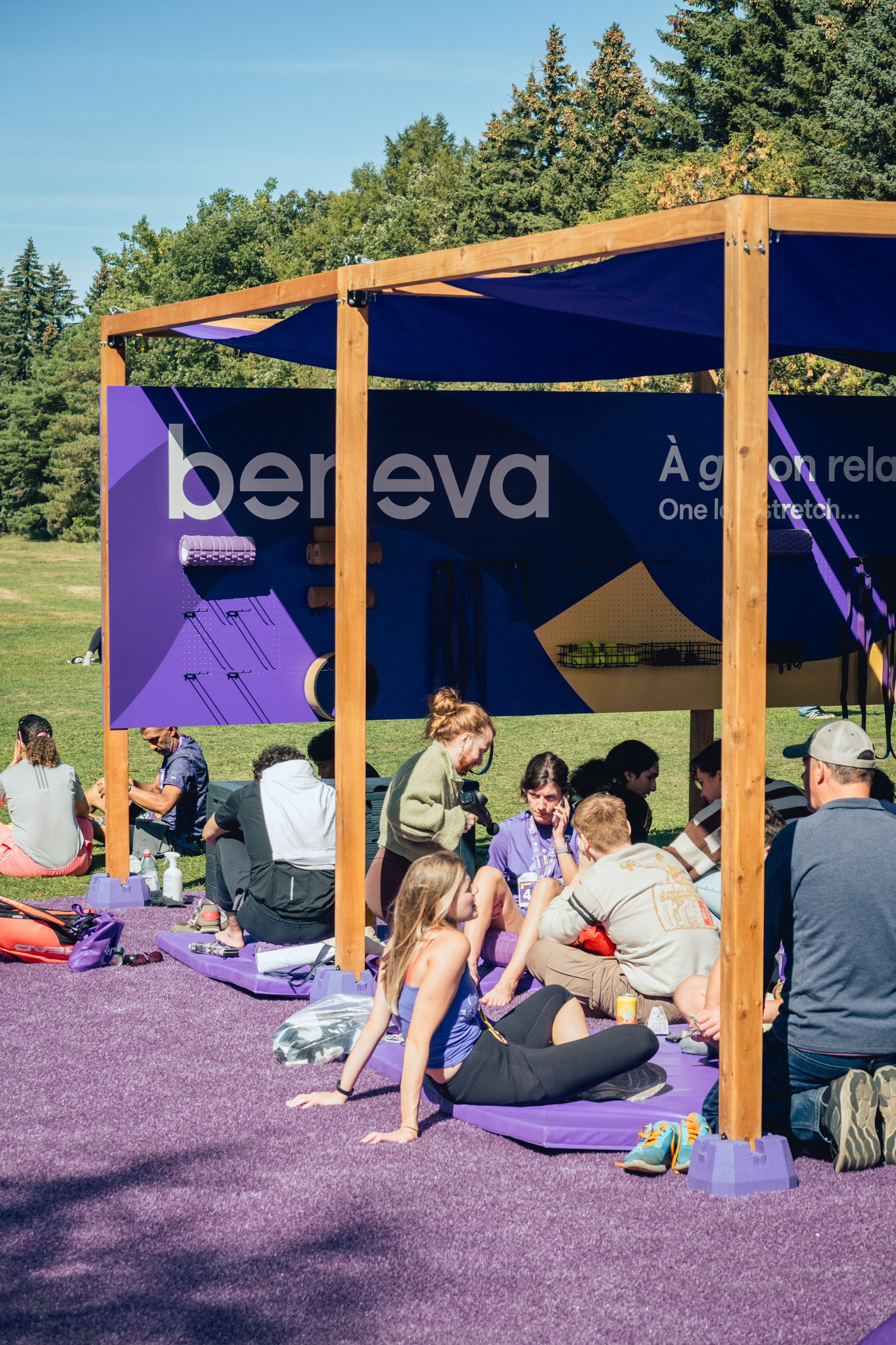 Produire un ensemble de structures pour une activation sportive de la marque Beneva. Ce concept, élaboré par l’agence Gustav, est conçu pour partir en tournée et être déployé dans divers événements.