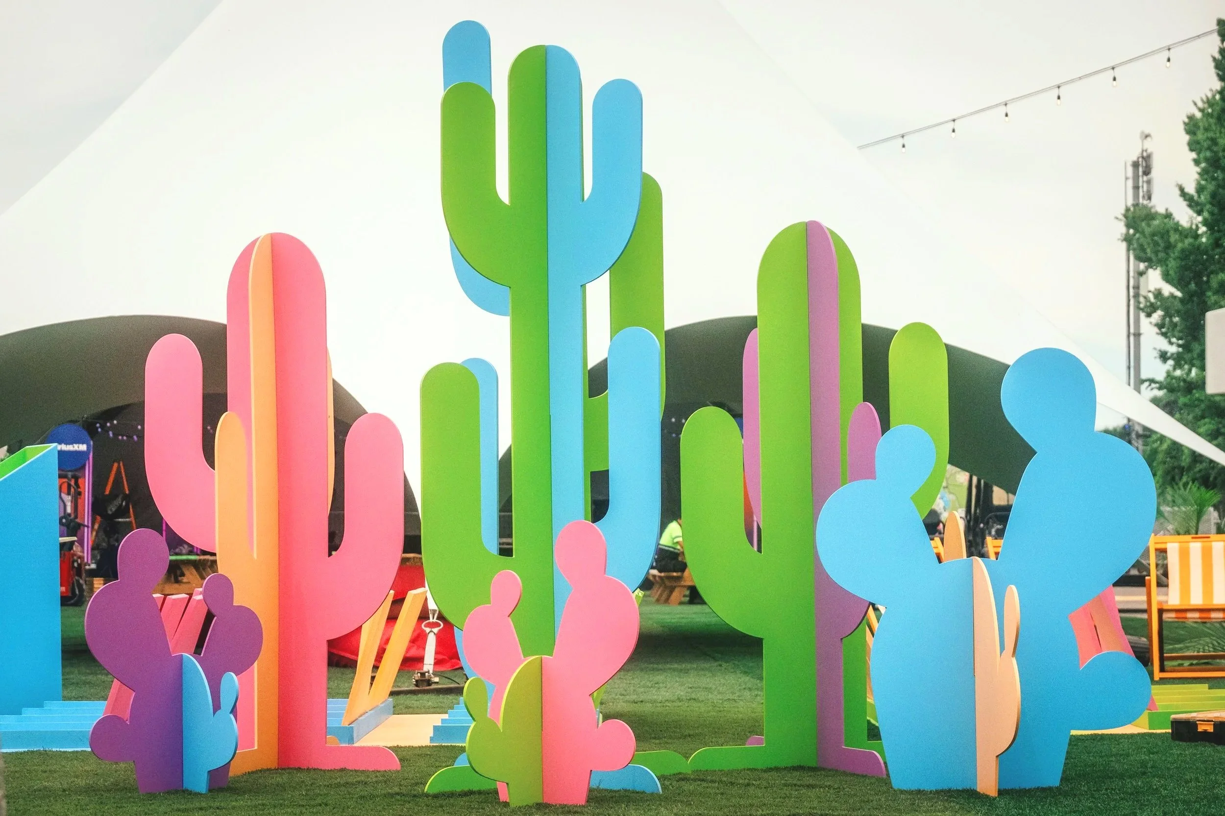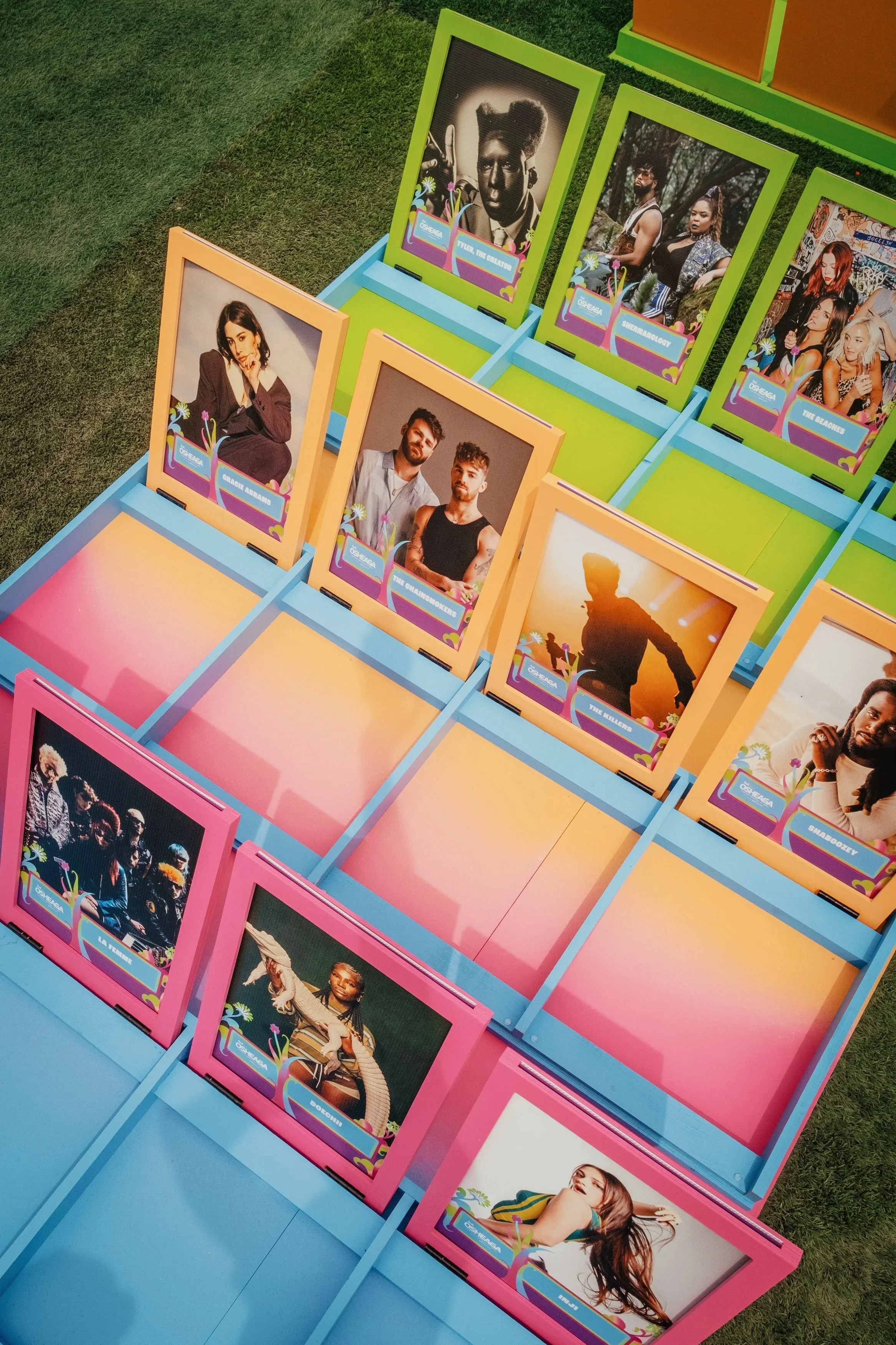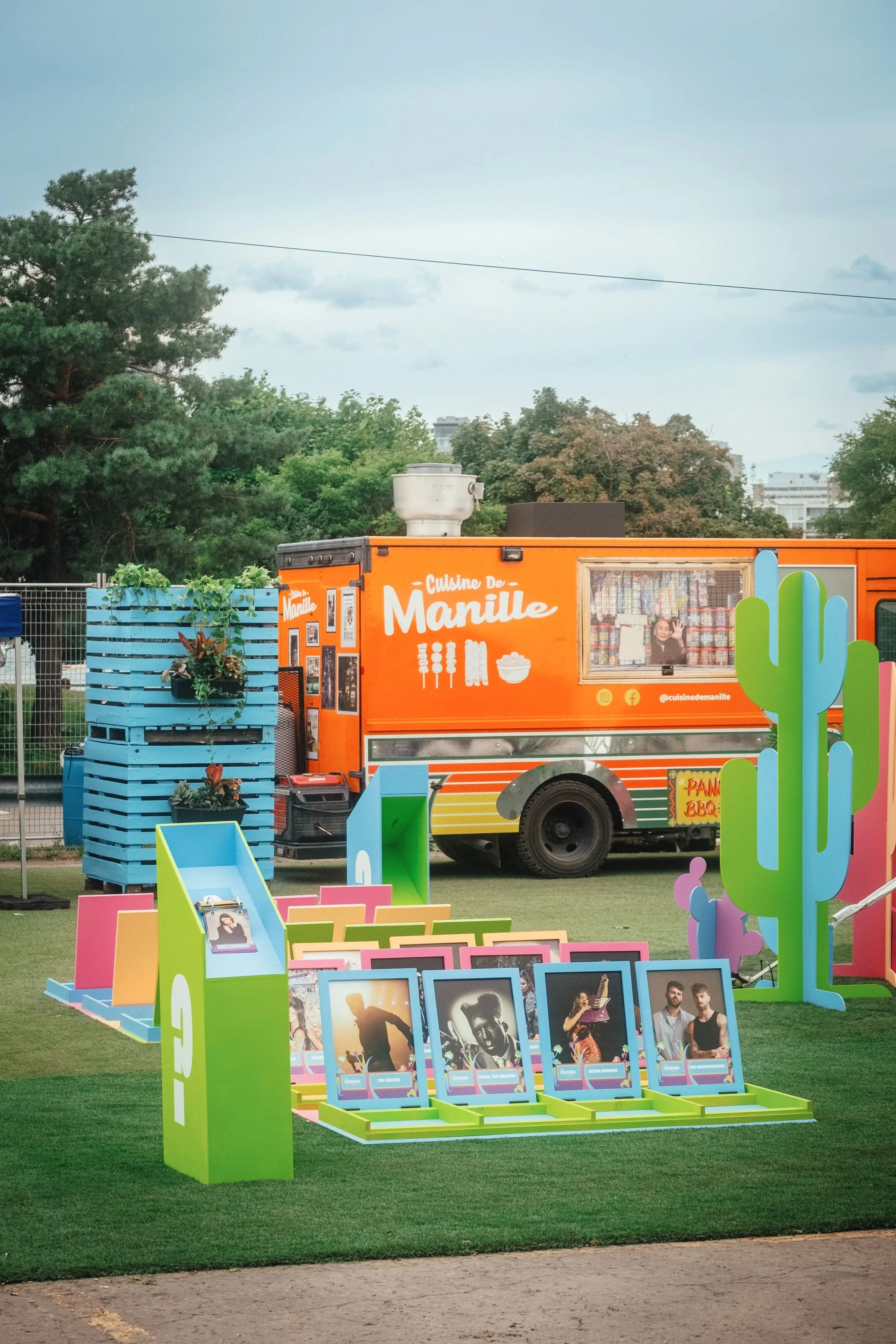 Concevoir et produire un jeu géant sur mesure et des accessoires décoratifs colorés pour l’une des zones détente du festival Osheaga.