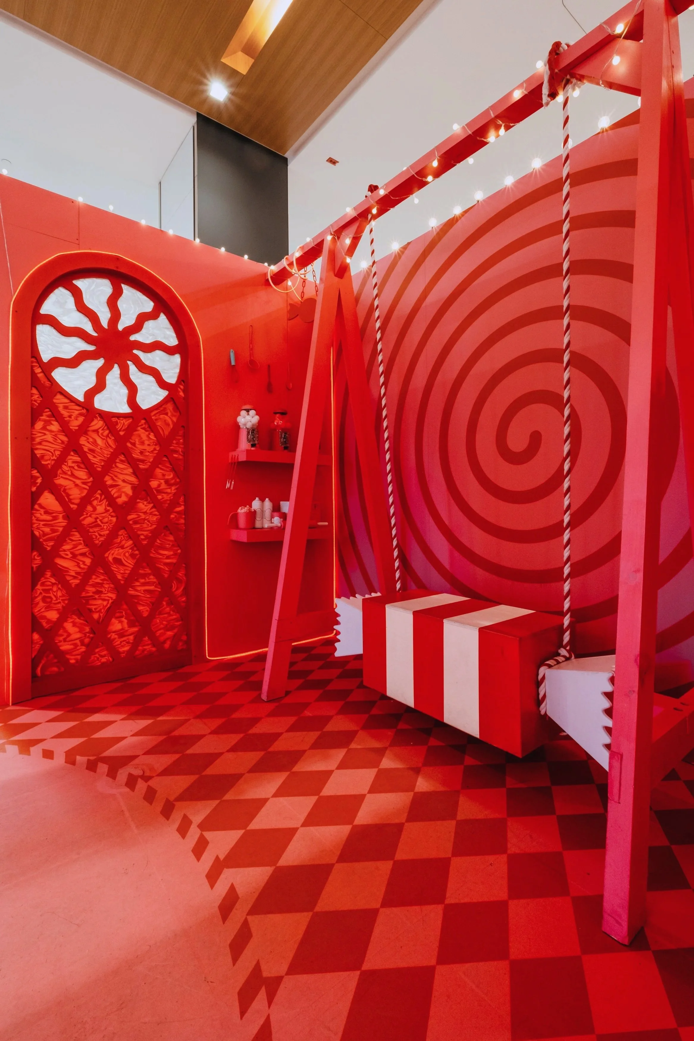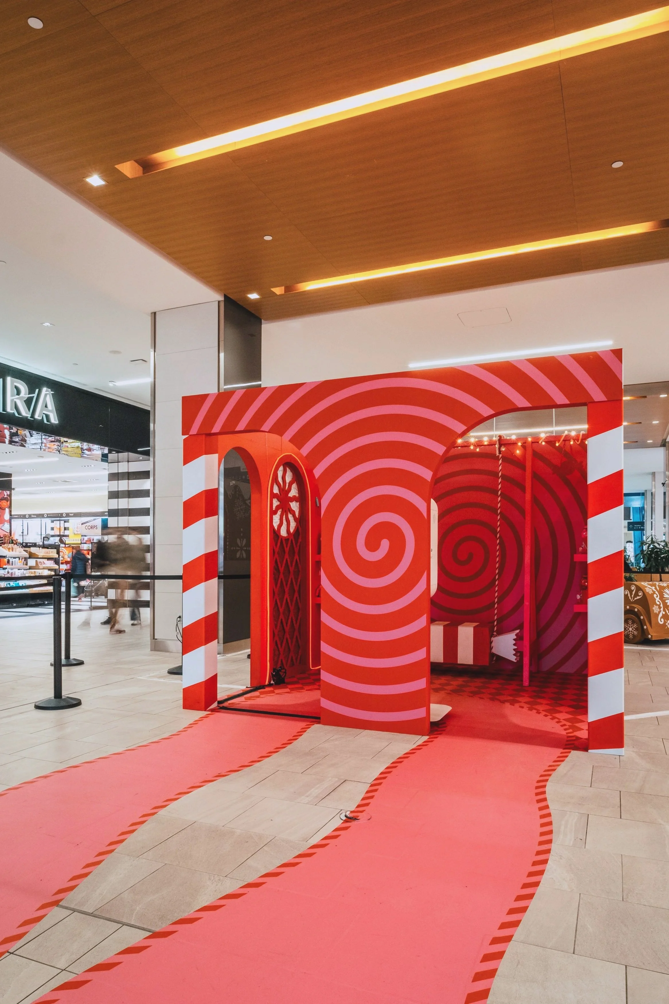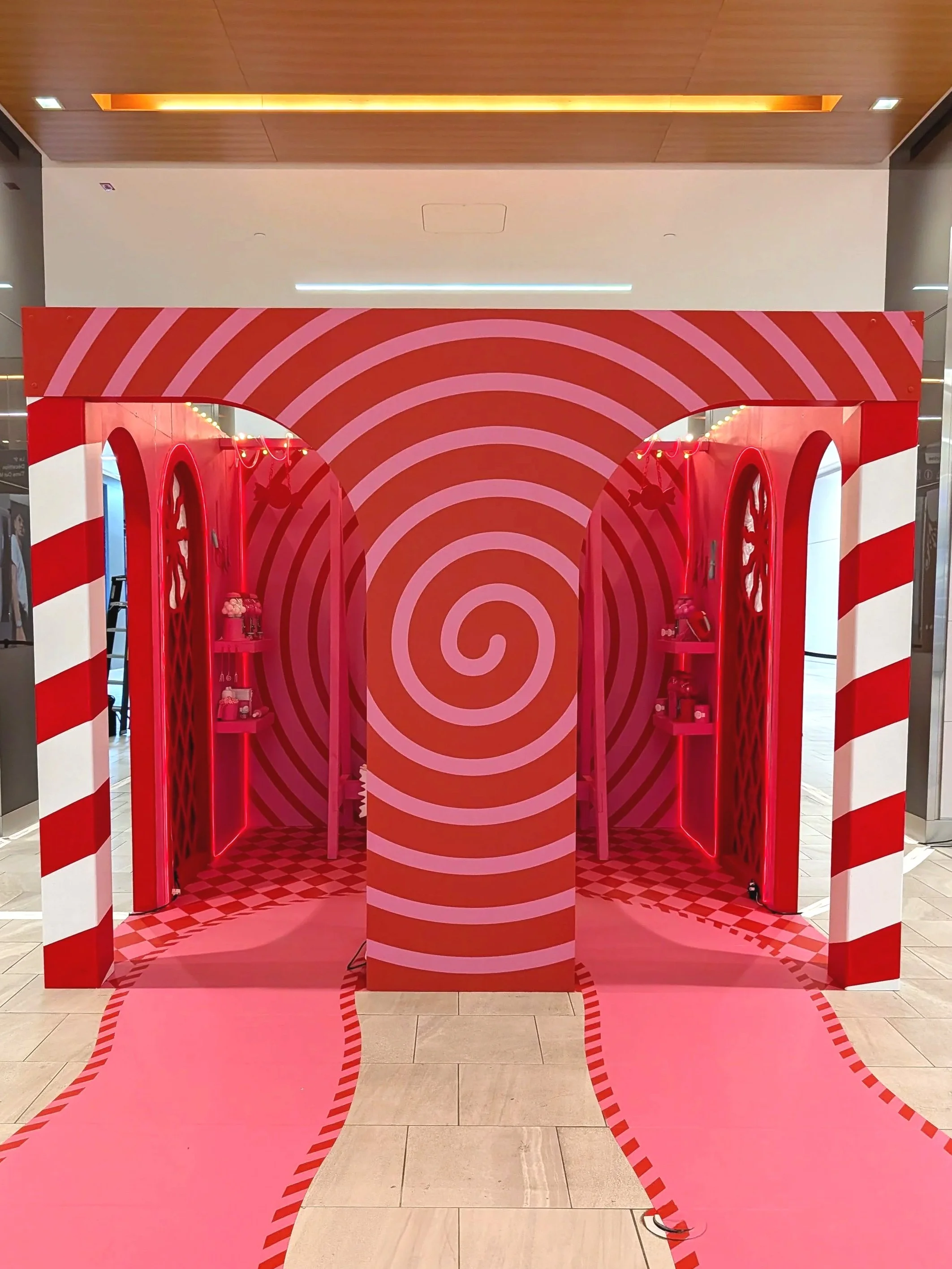 Concevoir et fabriquer deux photobooths sur un thème sucré et flamboyant pour créer une attraction du temps des fêtes au Centre Eaton de Montréal.